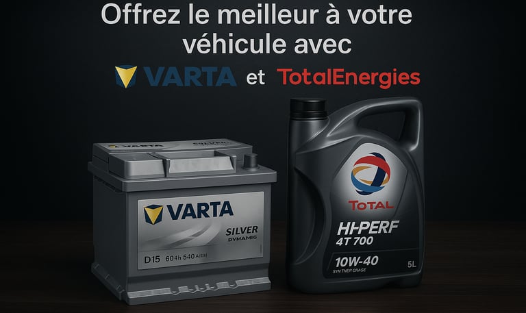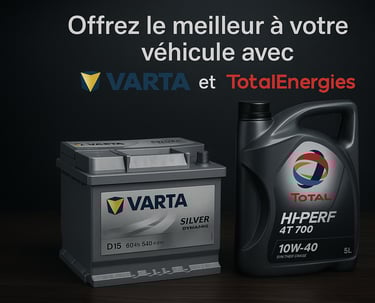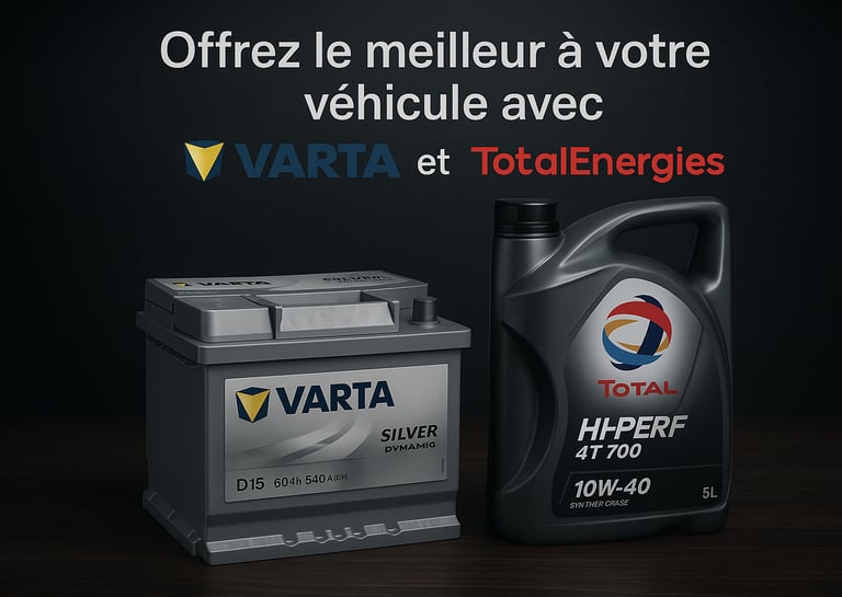 Partenariat avec Total Energies et Varta pour des produits de qualité.